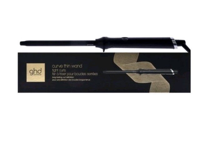 ghd Curve Professional Hair Curling Iron Wand 0.5-1.5 Inch 365F Auto Sleep Mode. The thinner and longer barrel is the ideal tool to create long-lasting tight, defined and even curls. Our self-regulating, ceramic barrel maintains the safer-for-hair temperature of 365F so that results are achieved from 3 seconds,* for effective curling with less damage.** Includes styling glove