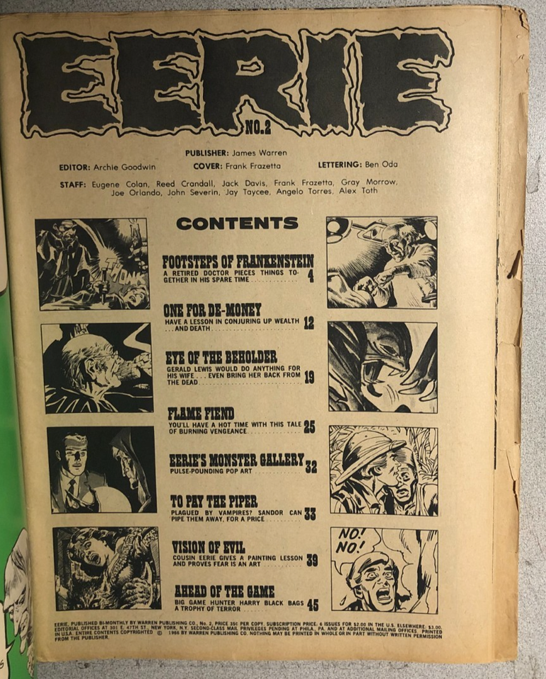 EERIE #2 (1966) first newsstand issue of Warren's B&W horror comics magazine F/G