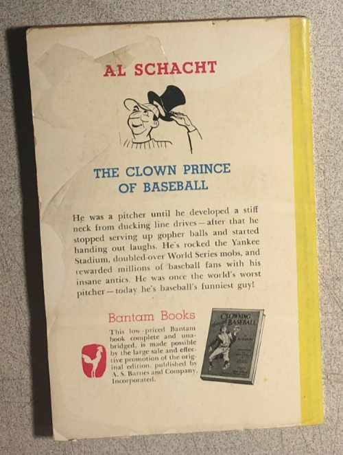 CLOWNING THROUGH BASEBALL by Al Schacht (1949) Bantam Books paperback 1st FINE-