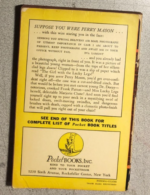 Perry Mason Lucky Legs by Erle Stanley Gardner (1941) Pocket Books paperback 1st