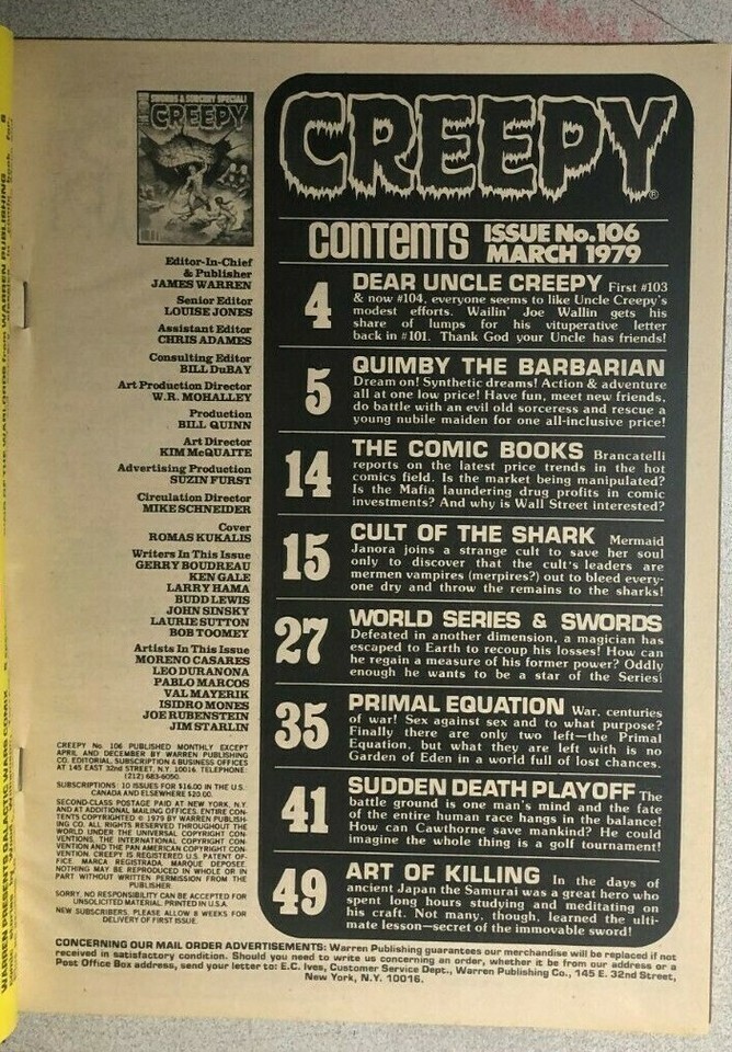 CREEPY #106 (1979) Warren B&W horror comics and similar items