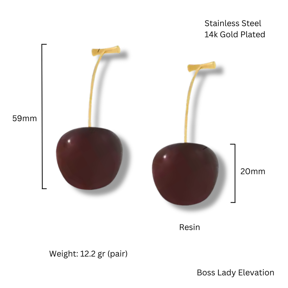 Trending Cherry Earrings | Resin Fruit Dangle | 14K Gold Plated Stainless Steel