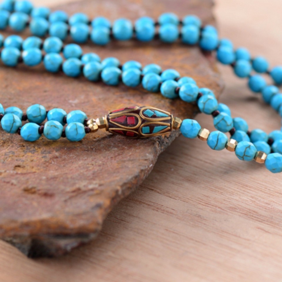 Turquoise Howlite Gemstone Necklace Handmade Boho Gold Beads Gift for Her