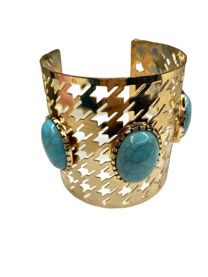 Introducing our stunning Gold Turquoise Bracelet ? an Egyptian-inspired masterpiece that transcends time and captivates with its regal charm! This intricately designed cuff is more than just a piece of jewelry; it's a symbol of timeless beauty and sophistication.