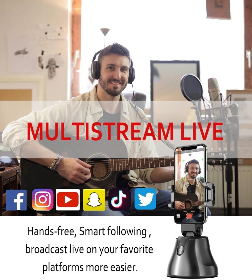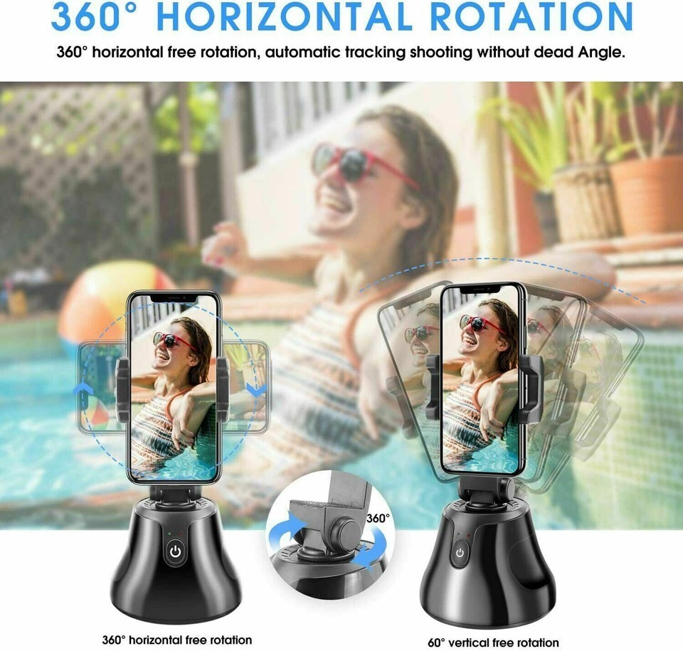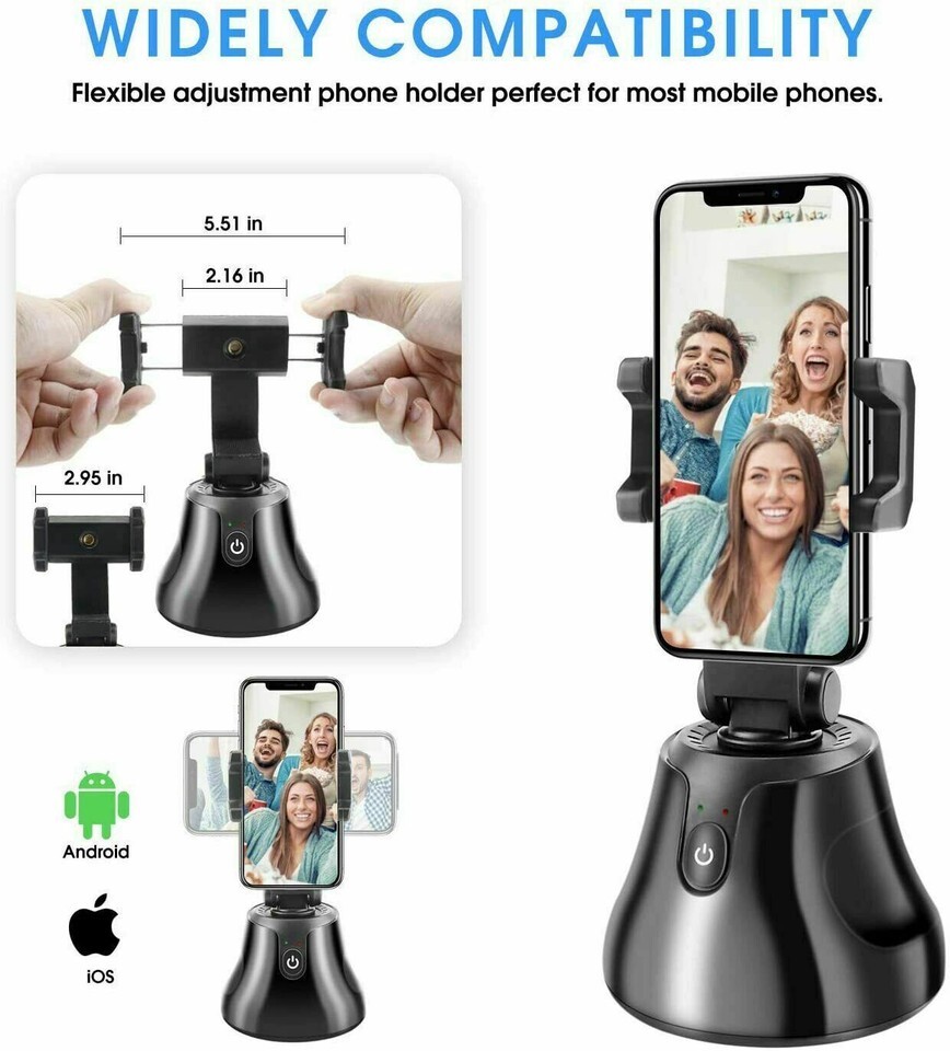 Selfie Snapshot Stand 360° Rotation Auto Face Tracking Smart Phone Apple Android