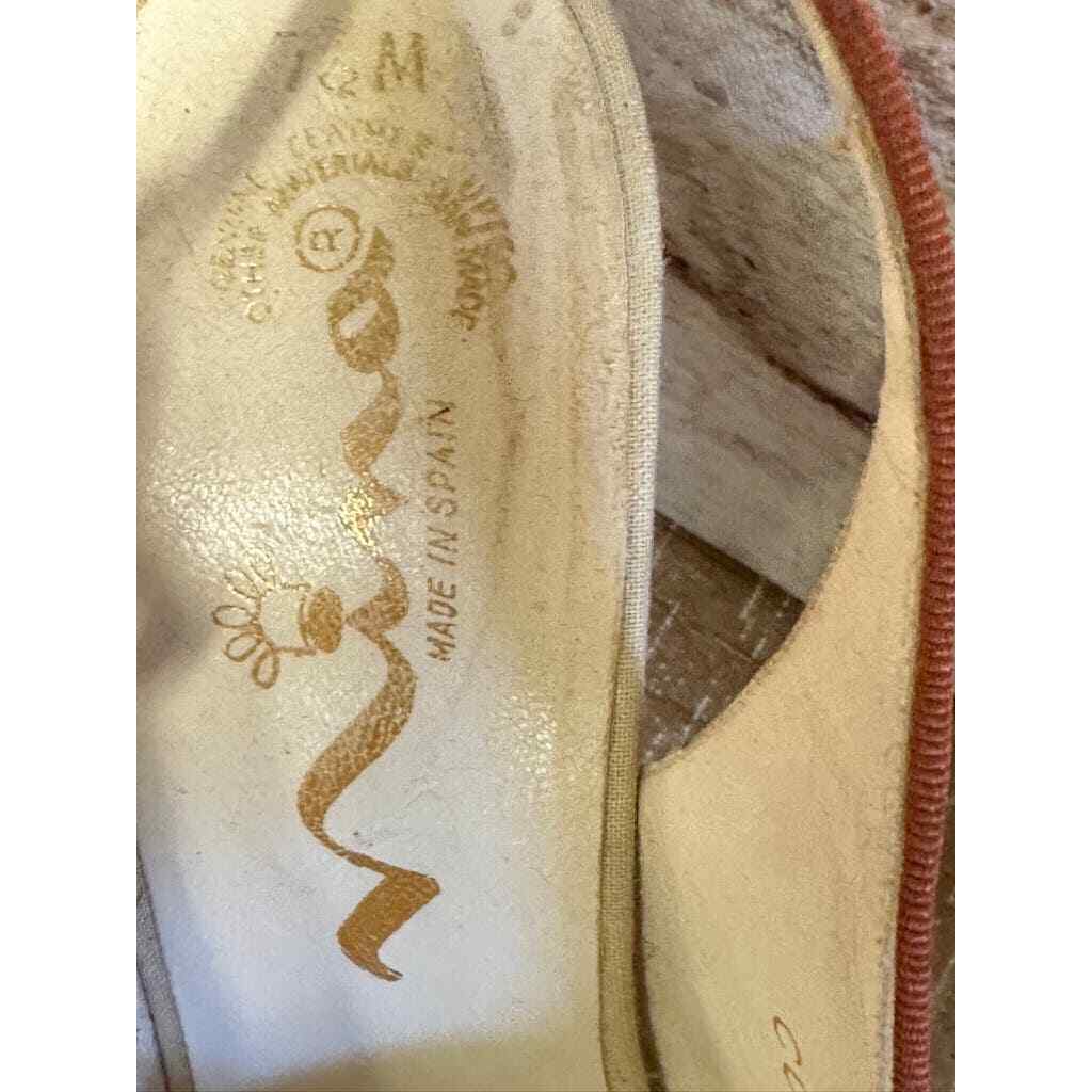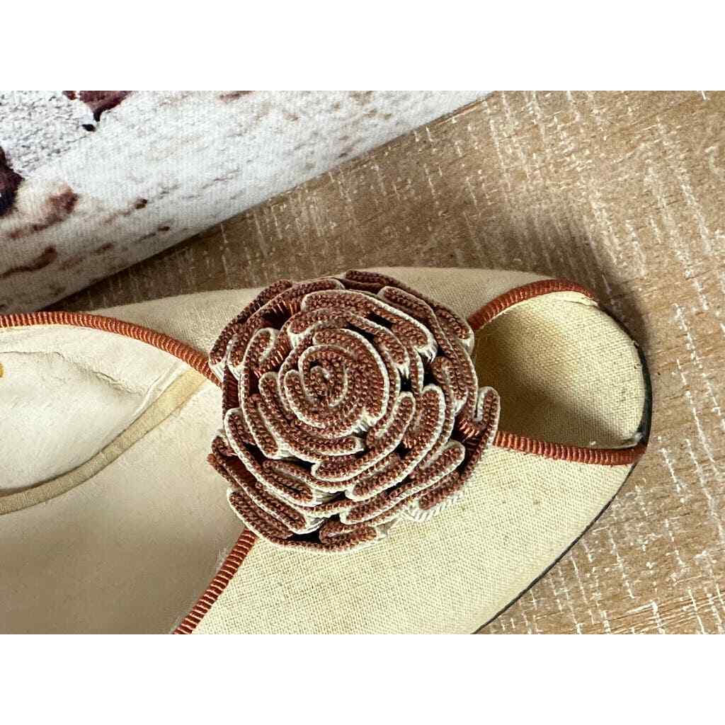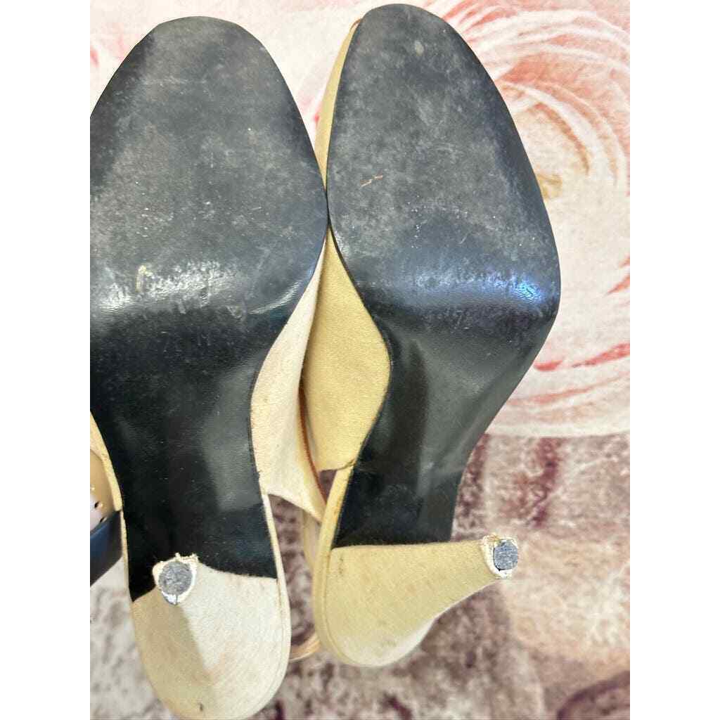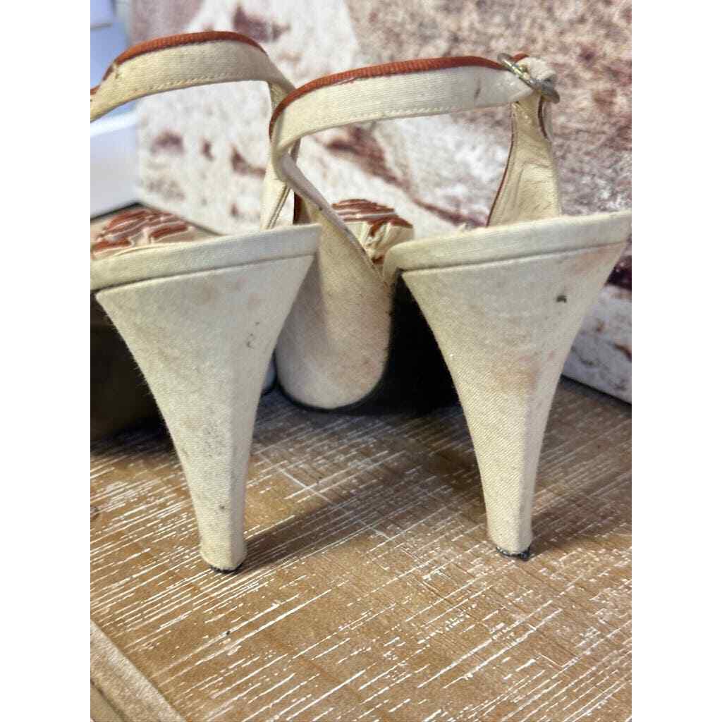VTG Nina Leather Slingback Open Toe Heels Canvas/Leather w/ Flower 7 1/2 M