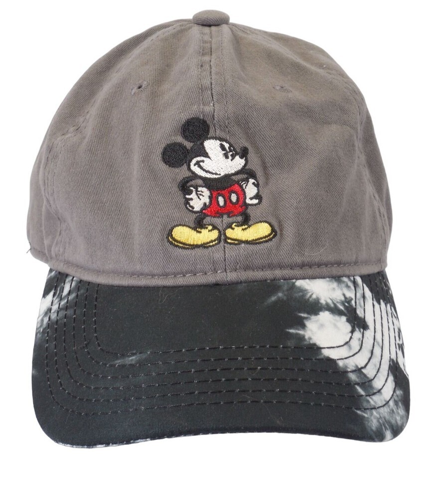 Disney Mickey Mouse Gray Adjustable Hat with Black White Tie Dye Brim