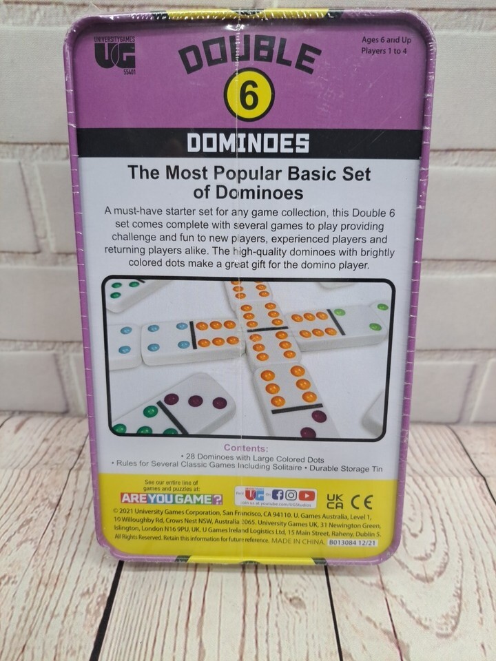 NIB Basic Double 6 Travel Tin Domino Set from, for 1-4 Players
