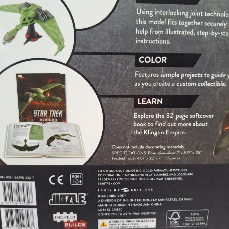 Star Yrek Klingon Bird Of Prey 3D Wood Model And Book