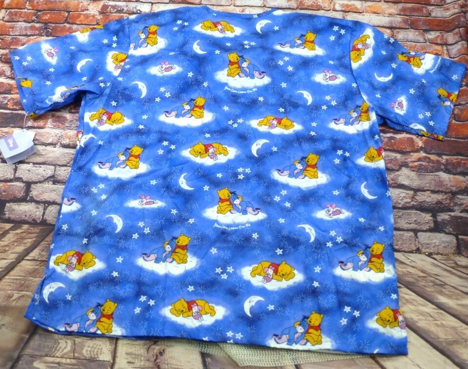 NWT Disney By Barco Womens Winnie The Pooh Scrub Top M Blue Cotton/Polyester Ble