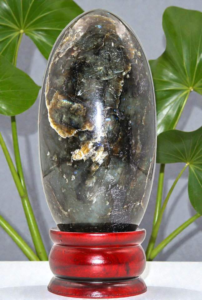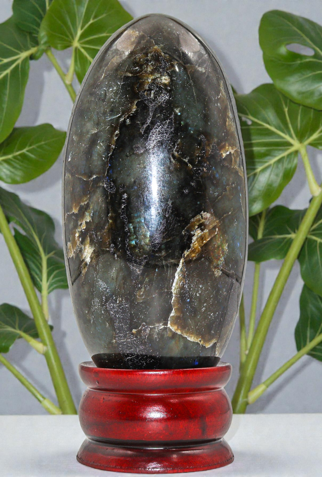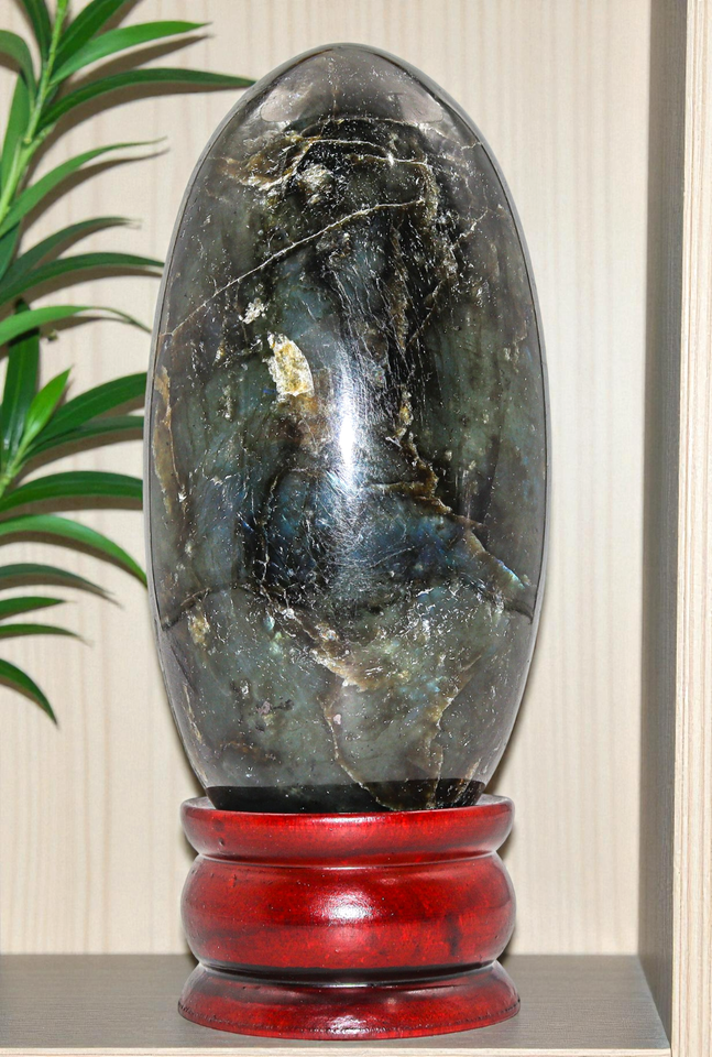 Questo e uno straordinario Lingam labradorite colore verde (forma ovale),