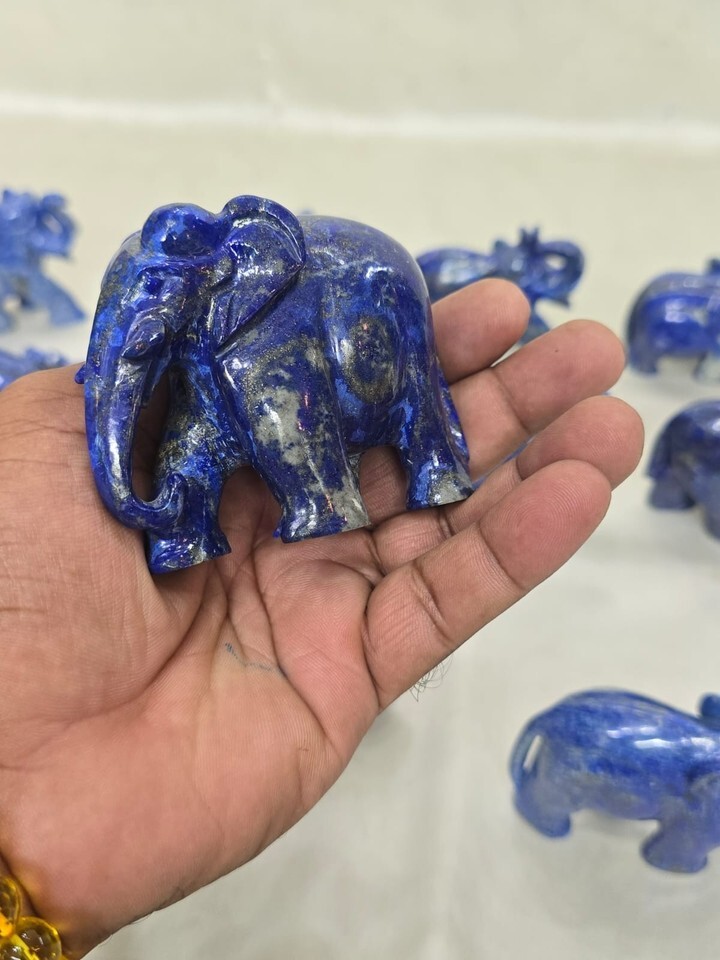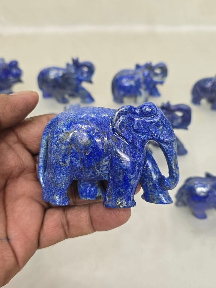 Porta pace, saggezza e protezione nella tua casa o nello spazio sacro con questa statuetta di elefante di lapislazzuli splendidamente scolpita a mano.