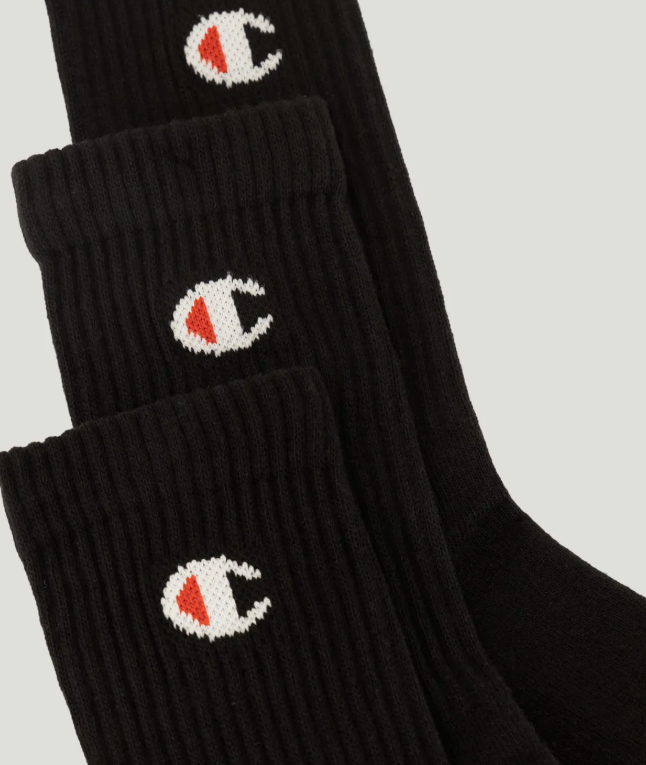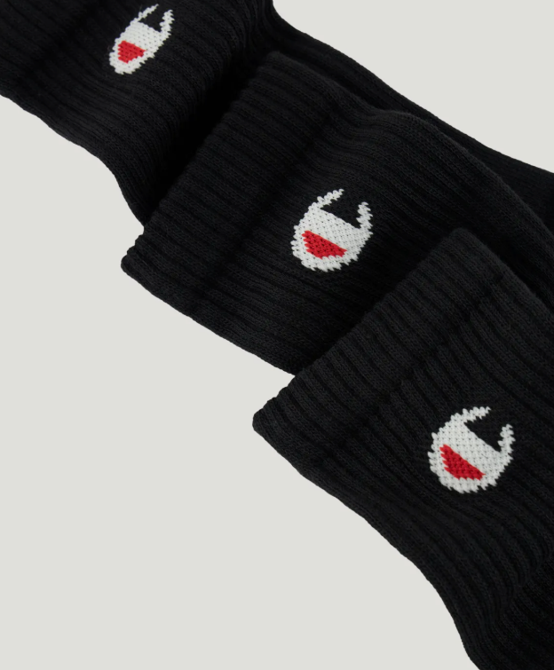 Champion C Logo Socks 3Pairs Unisex Casual Lifestyle Sports Socks NWT Black