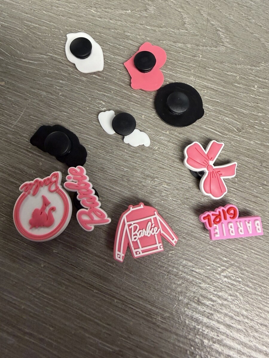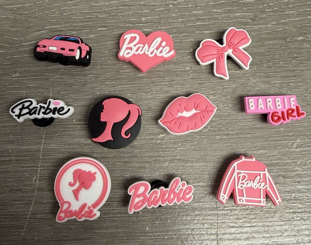 The Barbie SHOE CHARMS 10 Pack Crocs are colorful shoe charms designed for both boys and girls who are fans of the Barbie character. The set includes a variety of multicolored charms with a Barbie theme, perfect for adding a fun and decorative touch to any pair of Crocs shoes. This accessory is ideal for young fashionistas who want to show off their love for the iconic Barbie brand through their footwear.