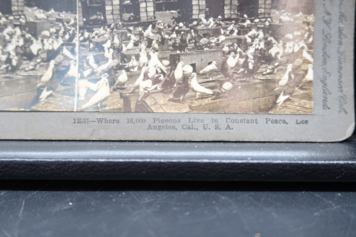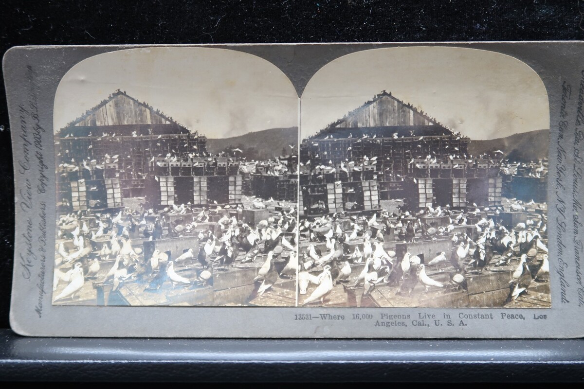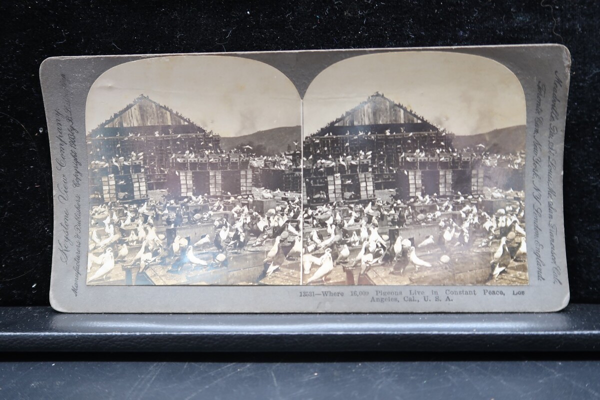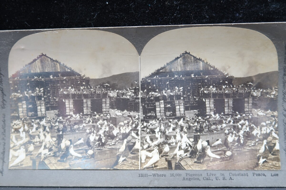 Antique Keystone Stereoview 16K Pigeons Los Angeles CA Americana HTF Pigeon Farm