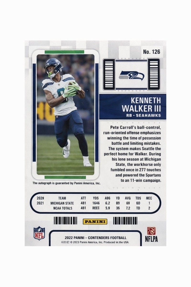 Kenneth Walker III RC 2022 Panini Contenders Rookie Ticket Auto NFL Seahawks #12