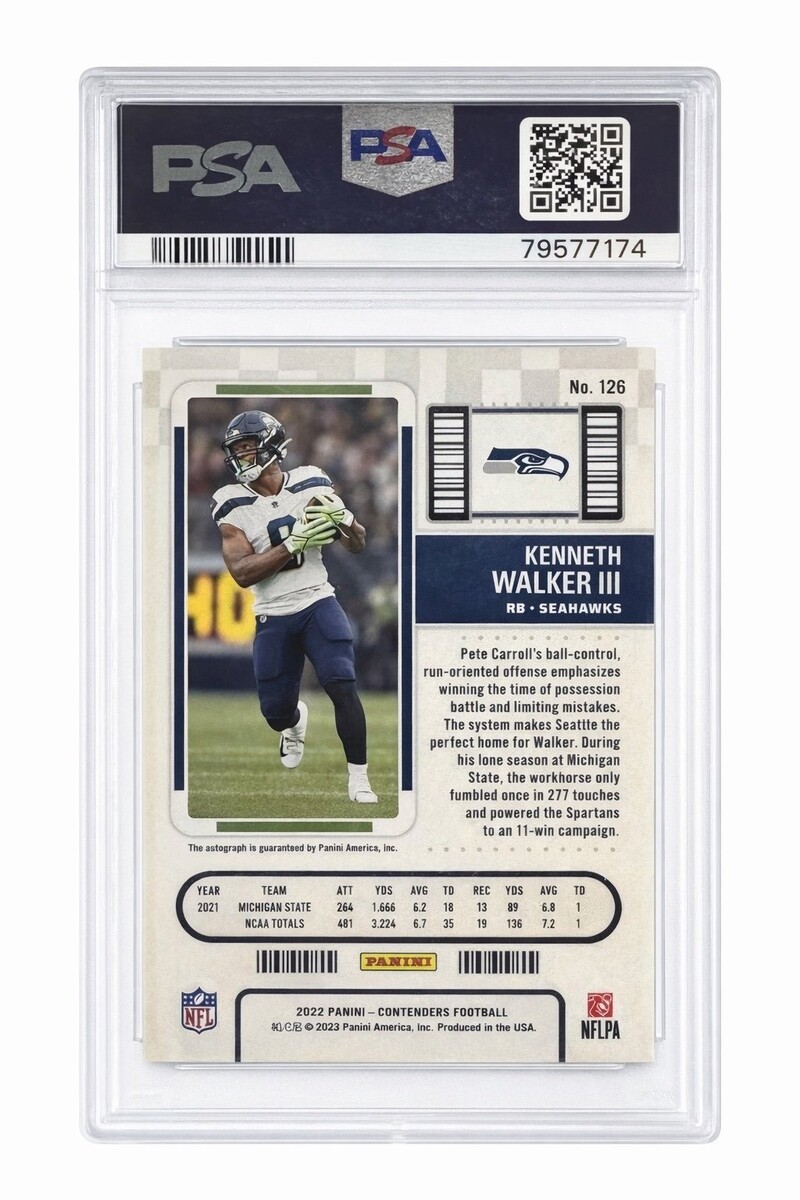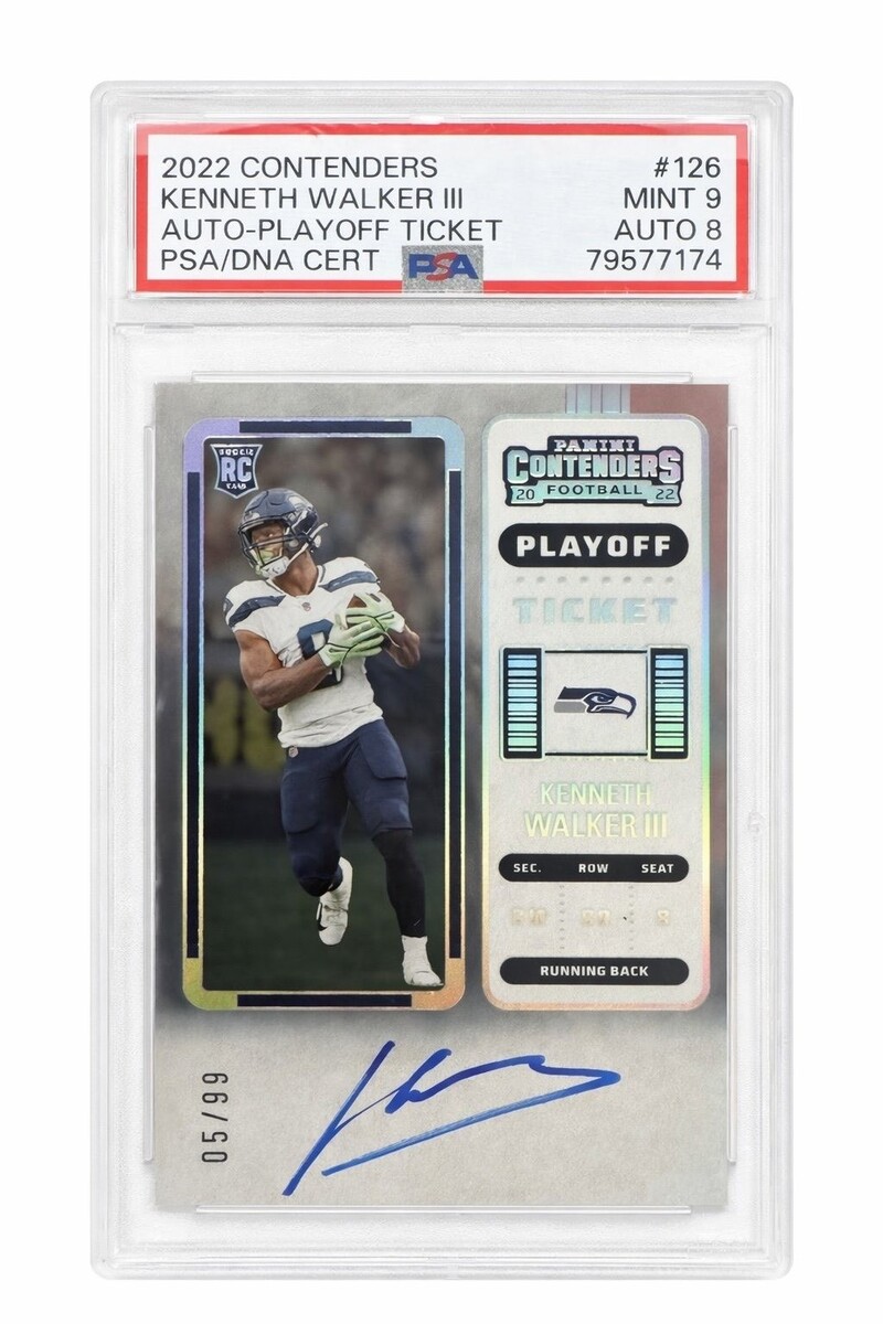 Kenneth Walker III RC 2022 Panini Contenders Playoff Ticket Auto PSA 9 Seahawks