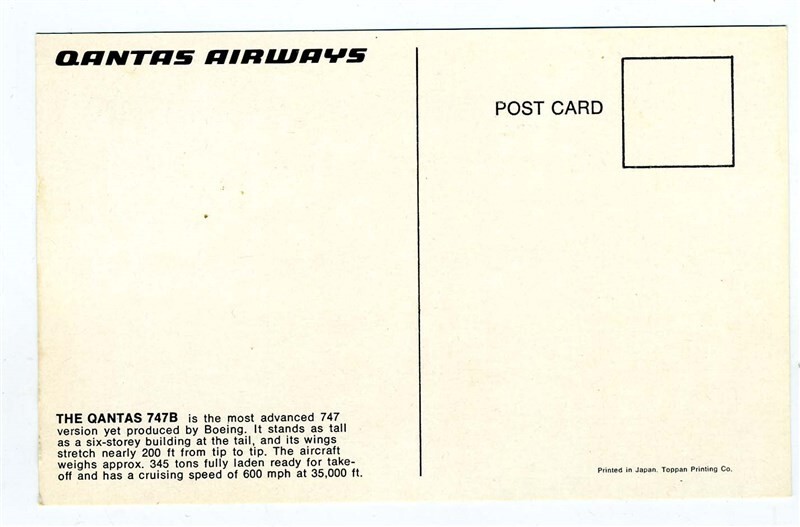 An official unused and near mint QANTAS postcard of the Boeing 747B in flight.