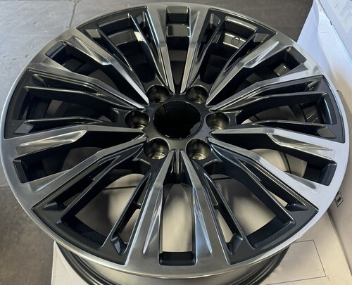 New Set Of Four GM Style Replica 22" Gunmetal And Polished Quarter Multi Split Spoke Wheels With New Ironman iMove Gen2 H/T 285/45R22 Tires.