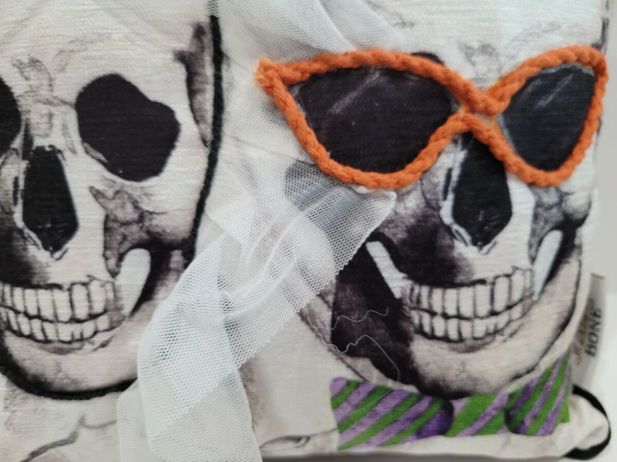 Up for sale we have this adorable Halloween throw pillow for your decor. The pillow has a bride and groom and the bride has 3D embroidered flowers and her white veil is also 3D. The pillow will look great in a bedroom, sofa or a couch. Size is 12"x12". I have many other Halloween pillows available in my store. New
