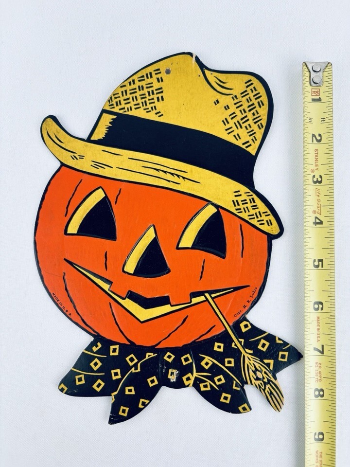 Vintage Halloween Pumpkin Face H E Luhrs - Die Cut Decoration