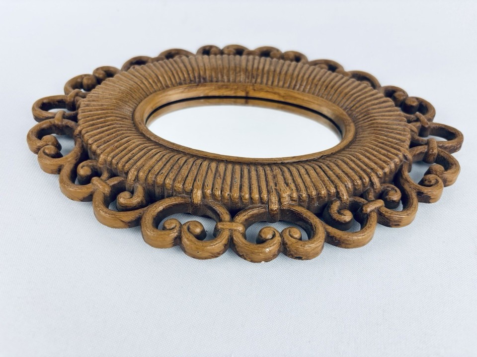 Vintage 1978 Dart Inc. Homco Wall Mirror Faux Wood Boho MCM Cottagecore Retro