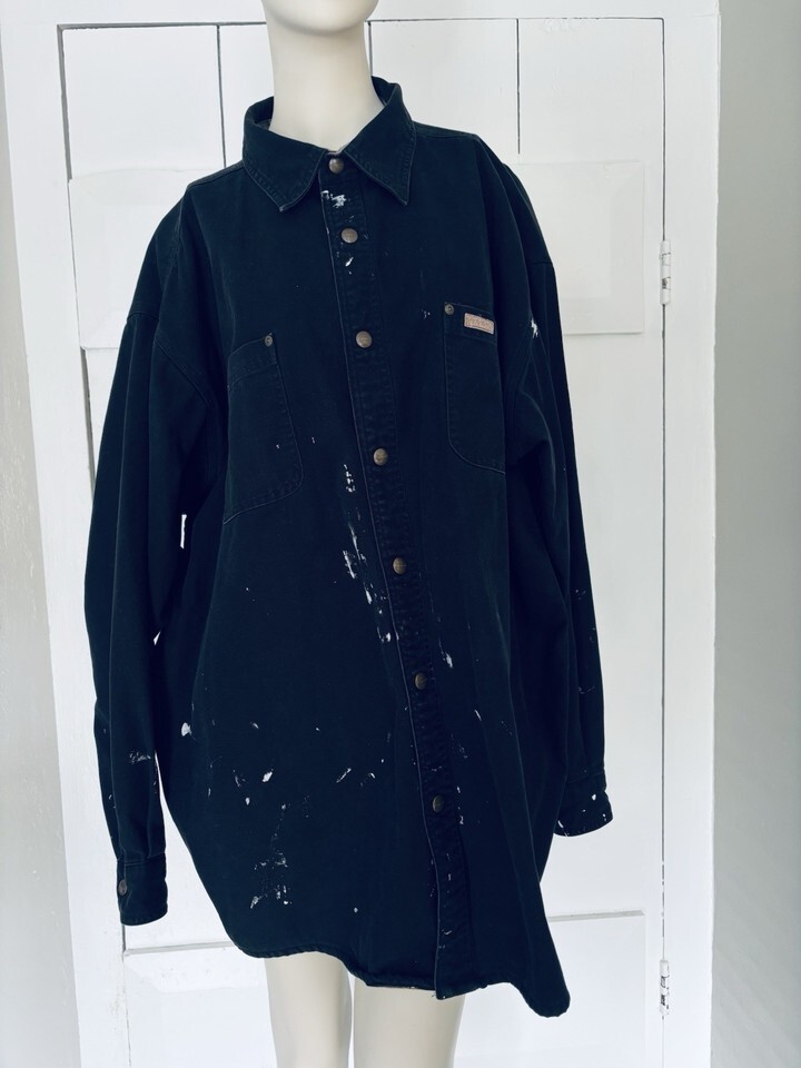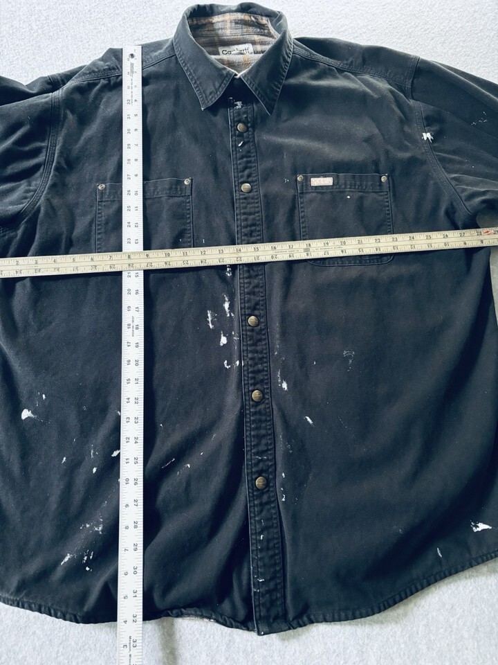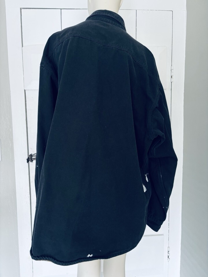 Carhartt S296 BLK Canvas Flannel Lined Snap Shirt Jacket Black 2XL Distressed
