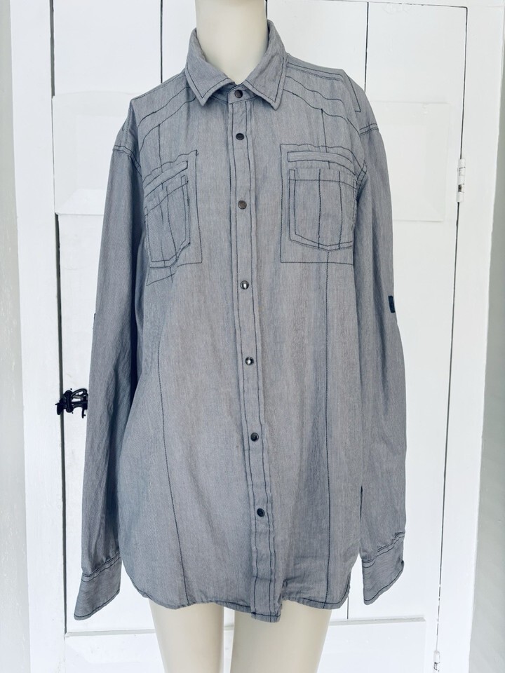Eighty Eight Platinum Men?s Button Up Blue Stripes Cotton Shirt Size Large