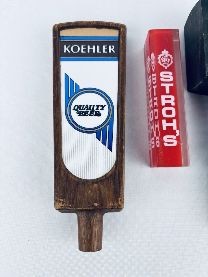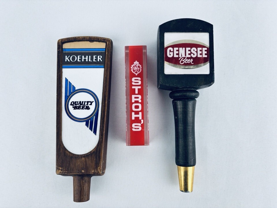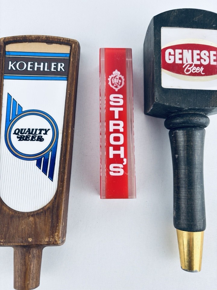 Koehler Stroh’s Genesee Wooden BEER Tap Handles PUB BAR Lot of 3 Brew