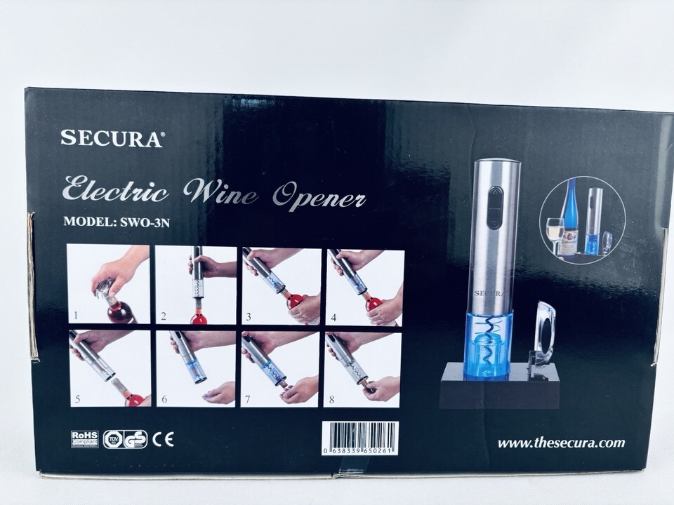 Secura Electric Wine Bottle Opener Foil Cutter Rechargeable Cordless Stainless