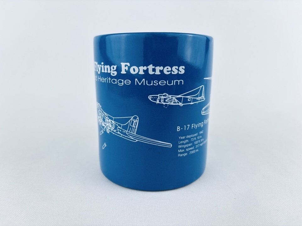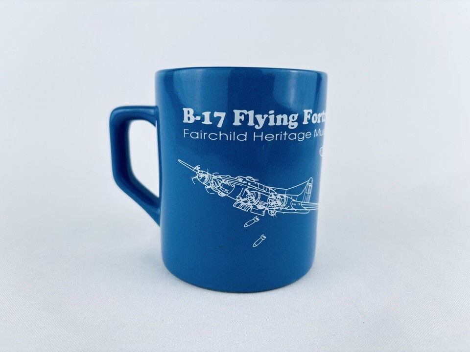 Vtg B-17 Flying Fortress Fairchild Heritage Museum Blue Airplane Mug Coffee Cup