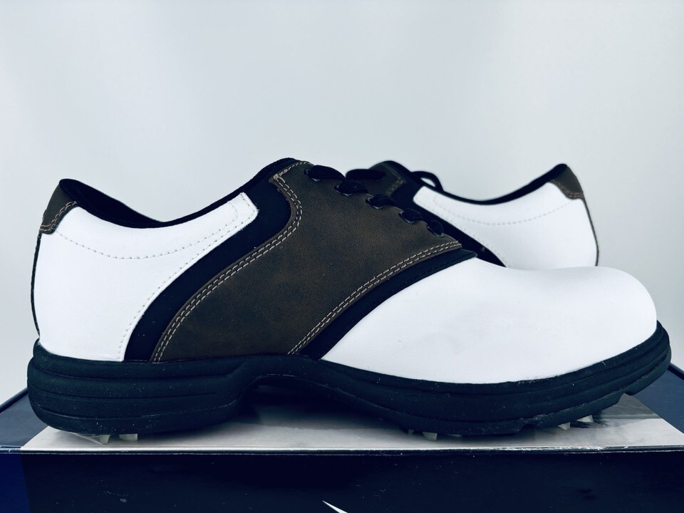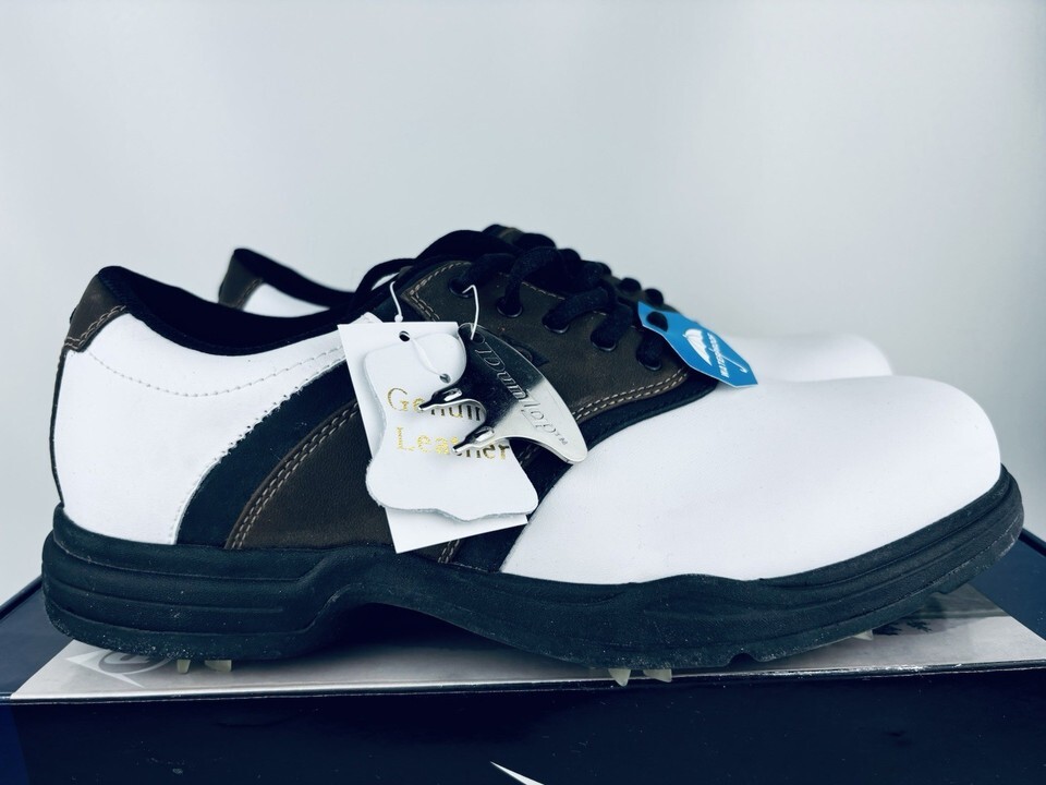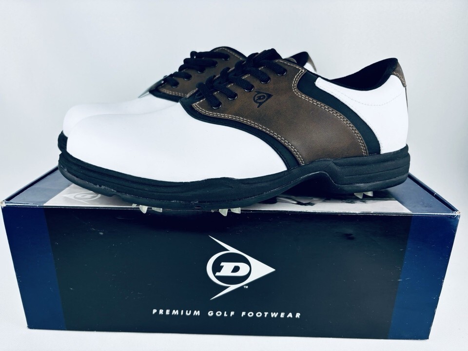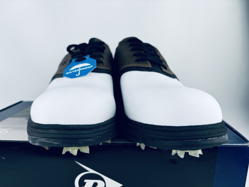 Dunlop Dry Golf Classic Saddle White Brown Shoes Leather Spike Men’s Size 9 NWT