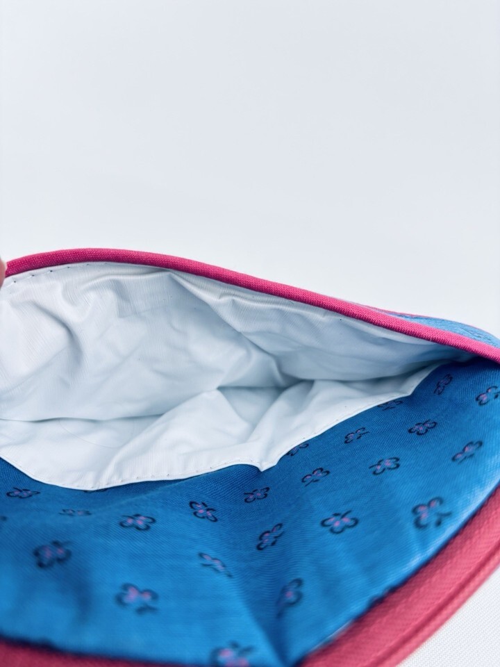 Vintage Lillian Vernon Cosmetic Makeup Bag Blue Pink Floral 1980’s Retro