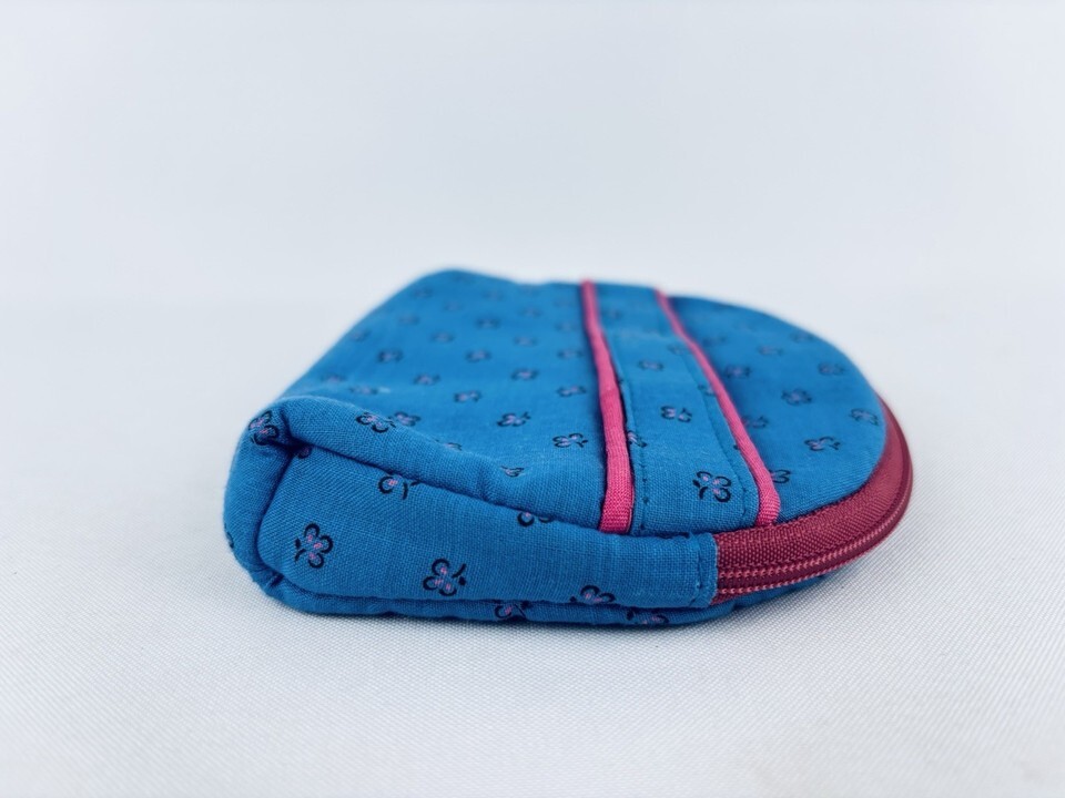 Vintage Lillian Vernon Cosmetic Makeup Bag Blue Pink Floral 1980?s Retro