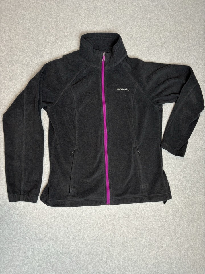Columbia Jacket Women’s Full Zip Long Sleeve Black Purple Fleece Outdoors Large