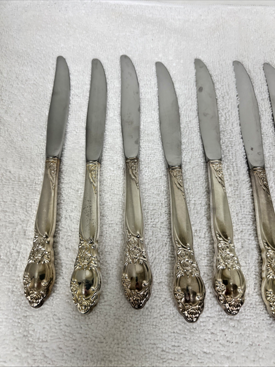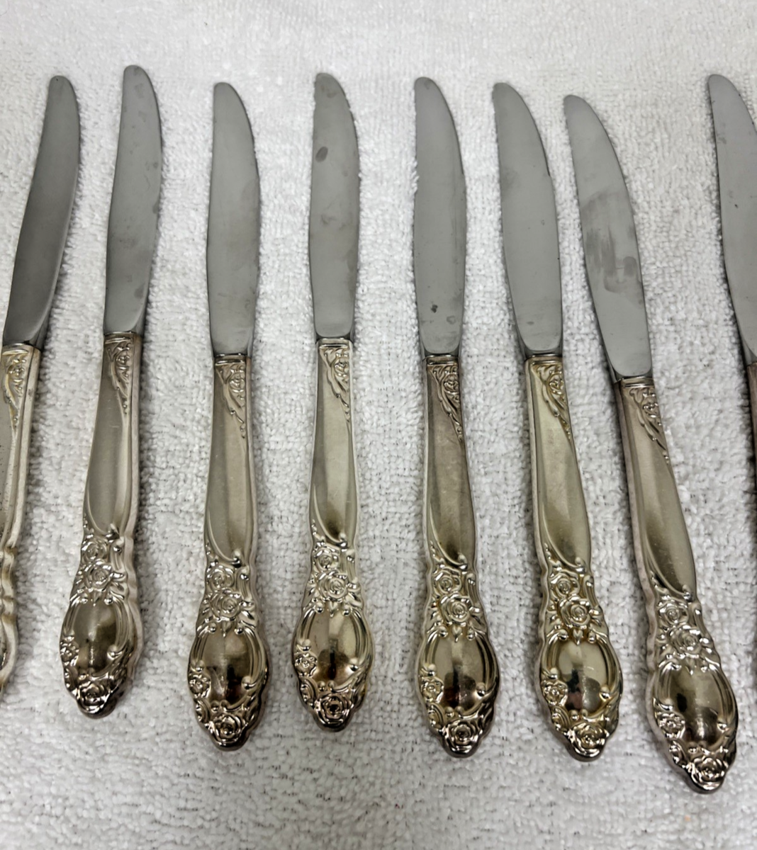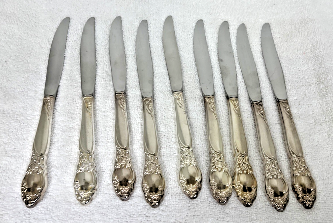 8 Plus One Vintage Oneida Ballard Country Lane Silver Plate Table Knives 1953