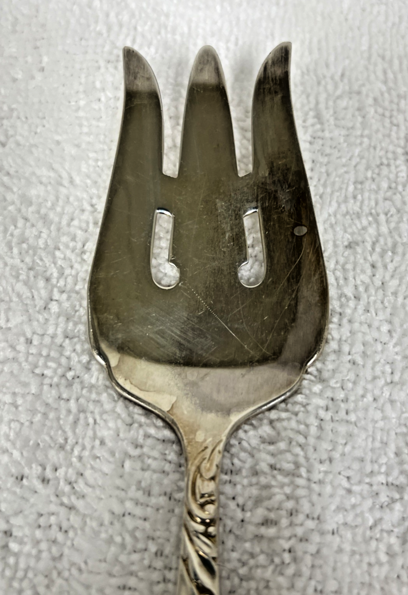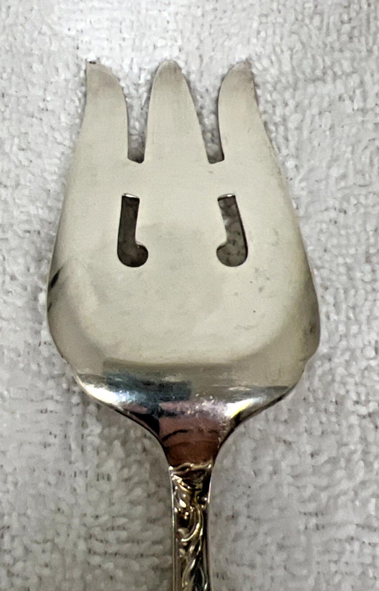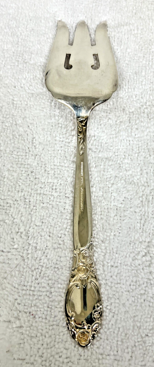 Vintage Oneida Ballard Country Lane Silver Plate Cold Meat Serving Fork 8 1/2". Cold meat serving fork floral Ballard Country Lane pattern measure approx. 8 1/2" long, signs of use, surface scratches, no damage, might need some cleaning, no monogram. See pictures.