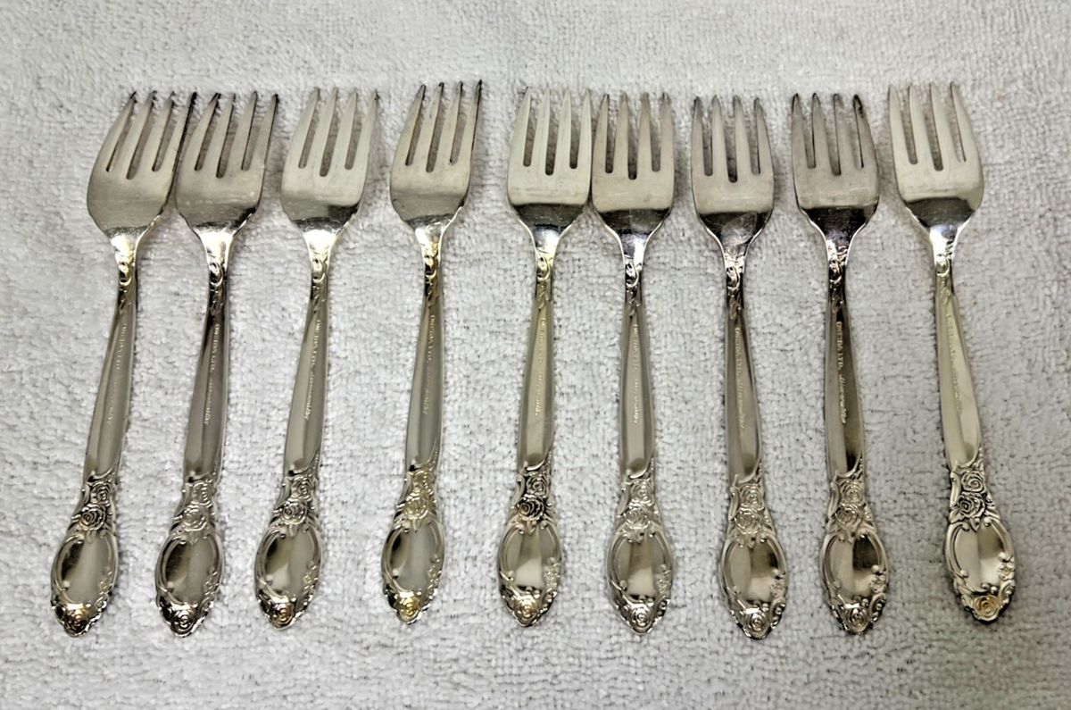8 Plus One Vintage Oneida Ballard Country Lane Silver Plate Salad Forks 6 3/4"