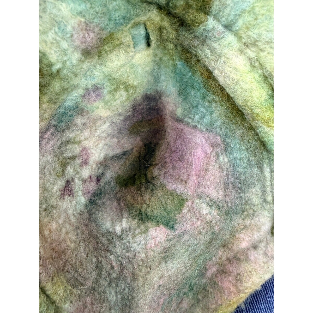 VTG 1990s Hand Felted Wool Cloche Hat Green Floral 20s Style Costume L