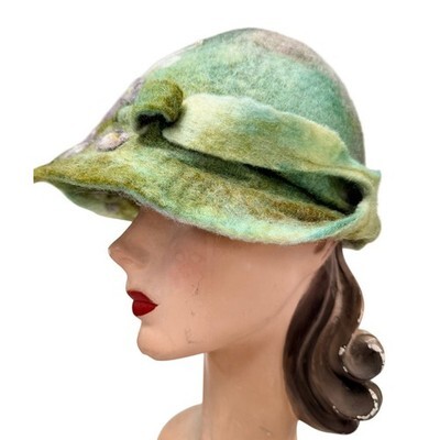 VTG 1990s Hand Felted Wool Cloche Hat Green and similar items