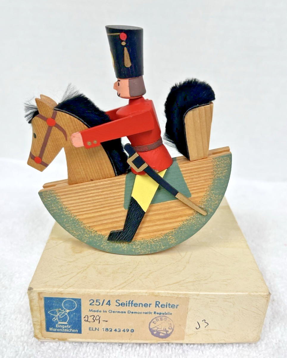 Vintage Seiffener Reiter Red Black German Soldier Rocking Horse Original Box