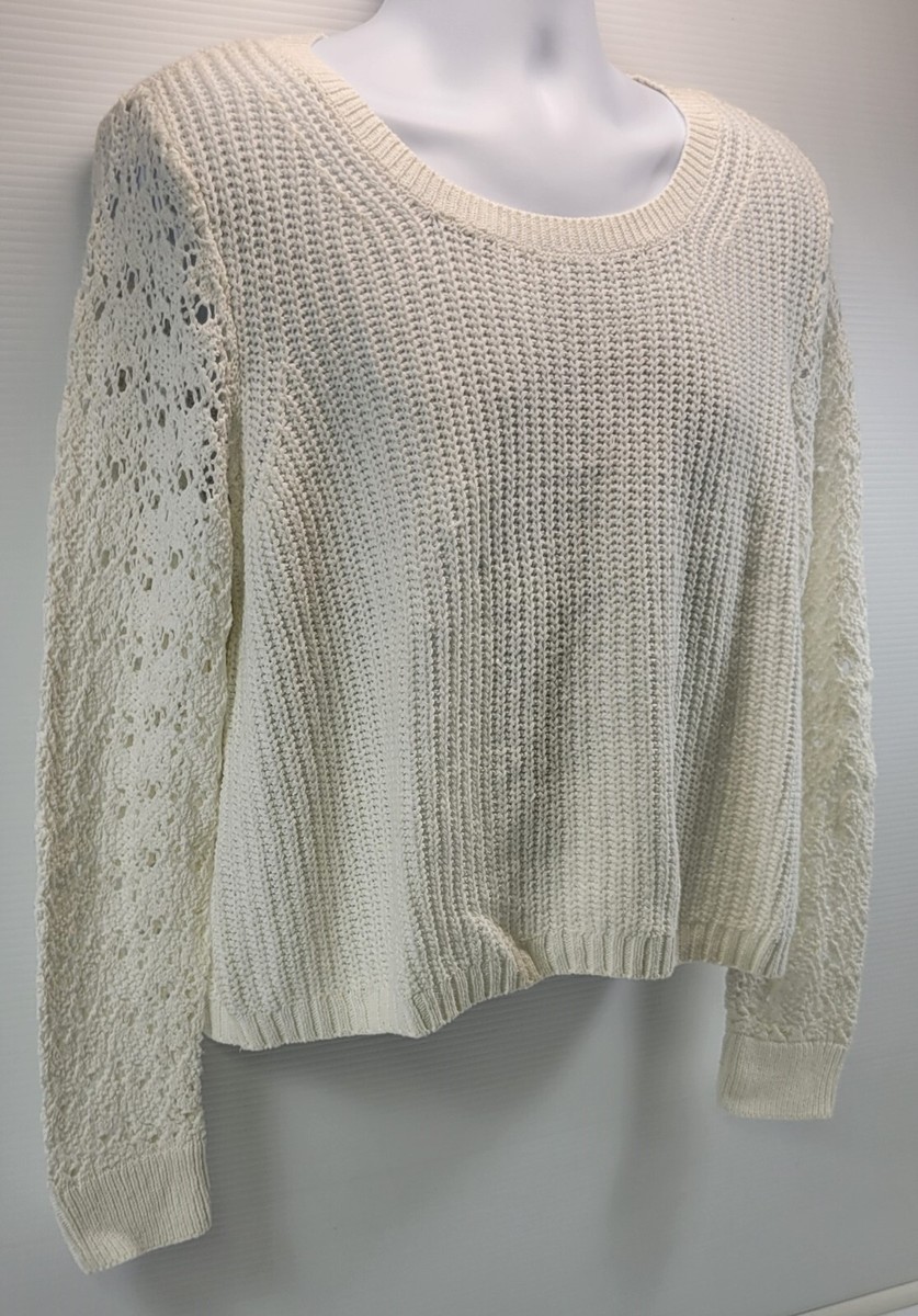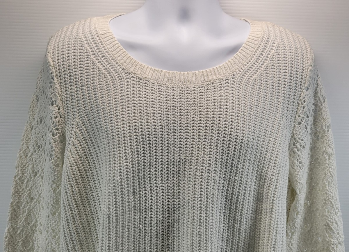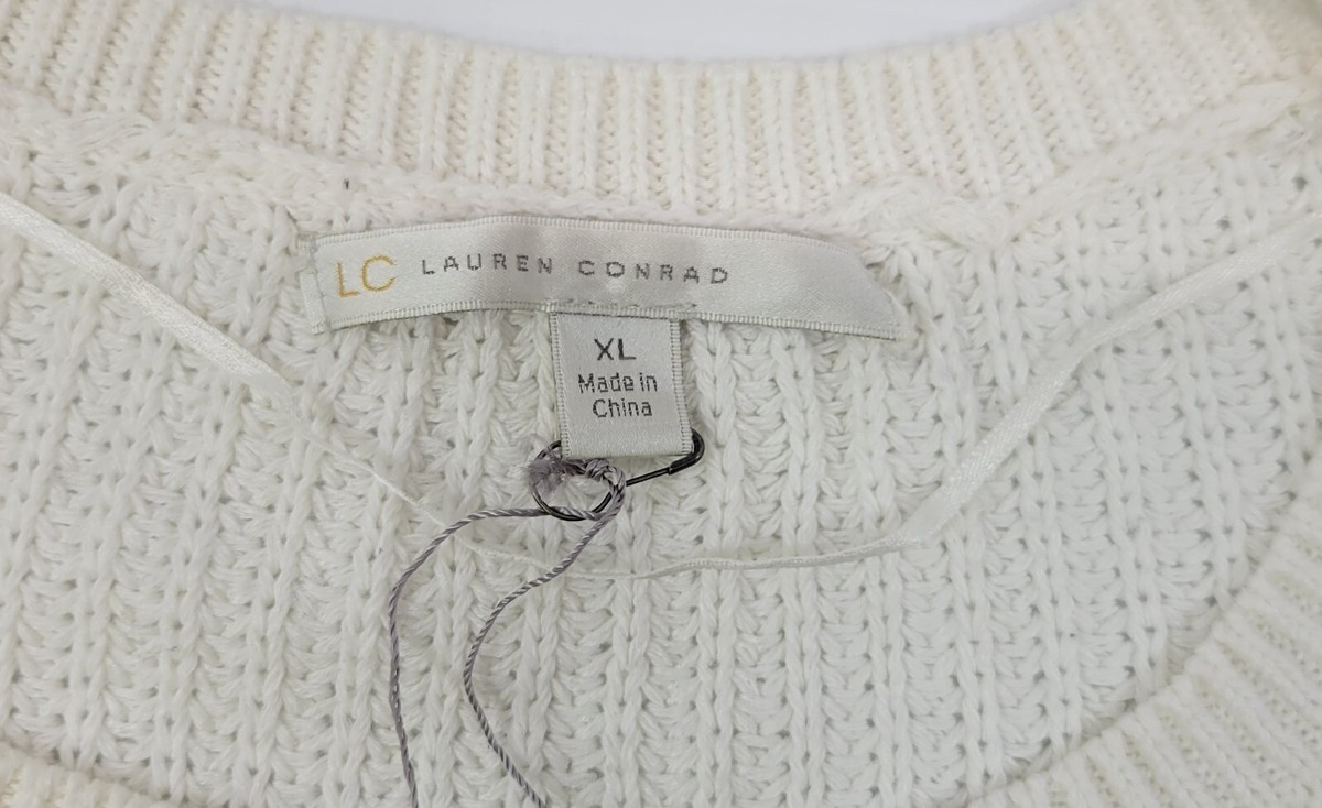 L) Lauren Conrad Woman Crochet Style White Pullover Shirt Top XL