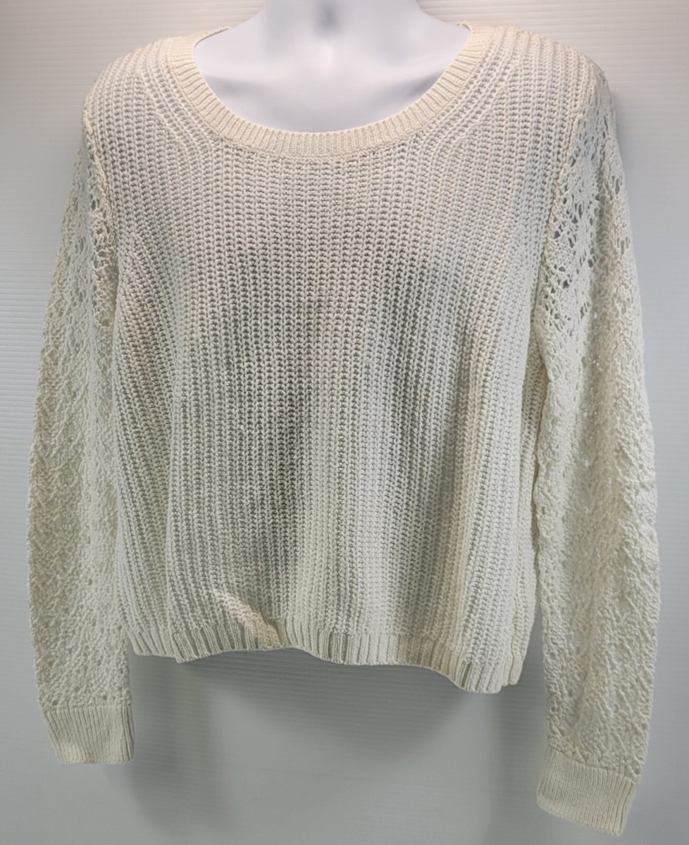 Lauren Conrad Woman Crochet Style White Pullover Shirt Top
