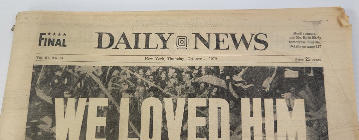 *L3) NY Daily News Pope John Paul visits New York October 4, 1979 Newspaper