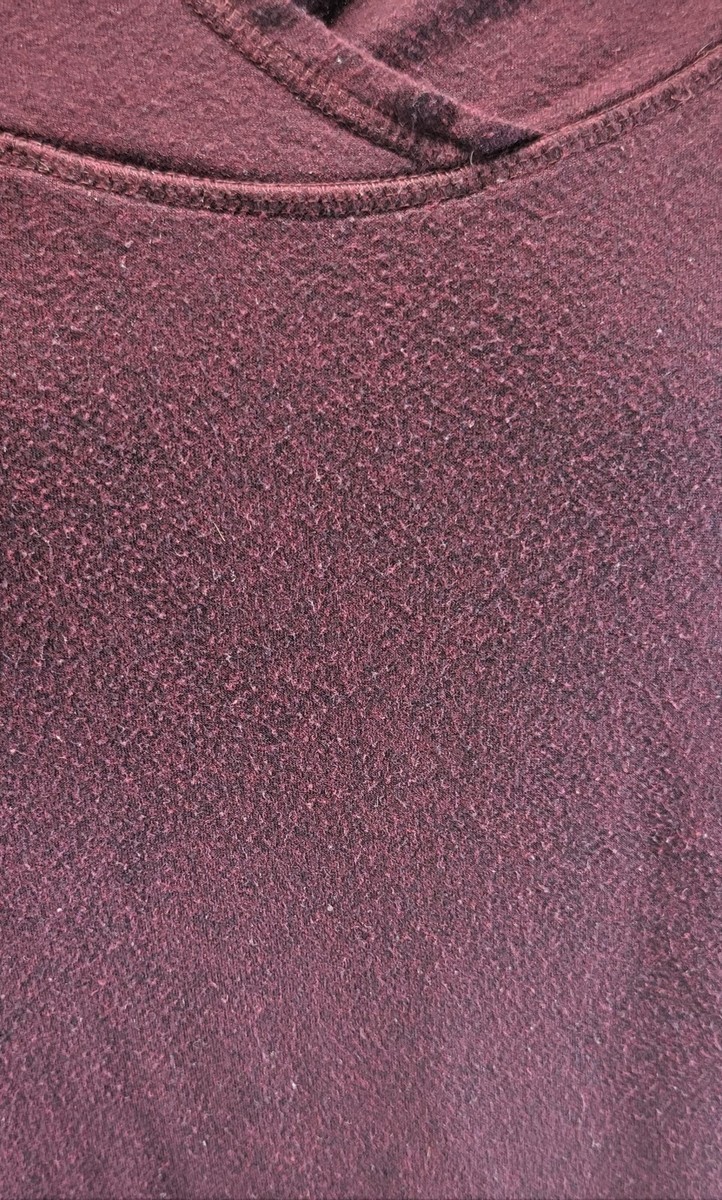 Pullover has some fabric piling from wear and washes but no rips, tears or stains.