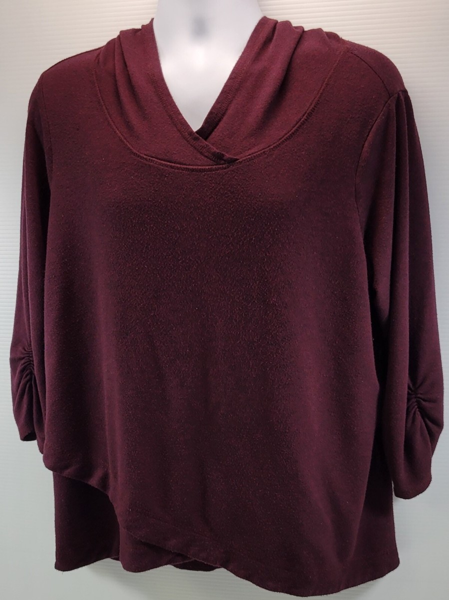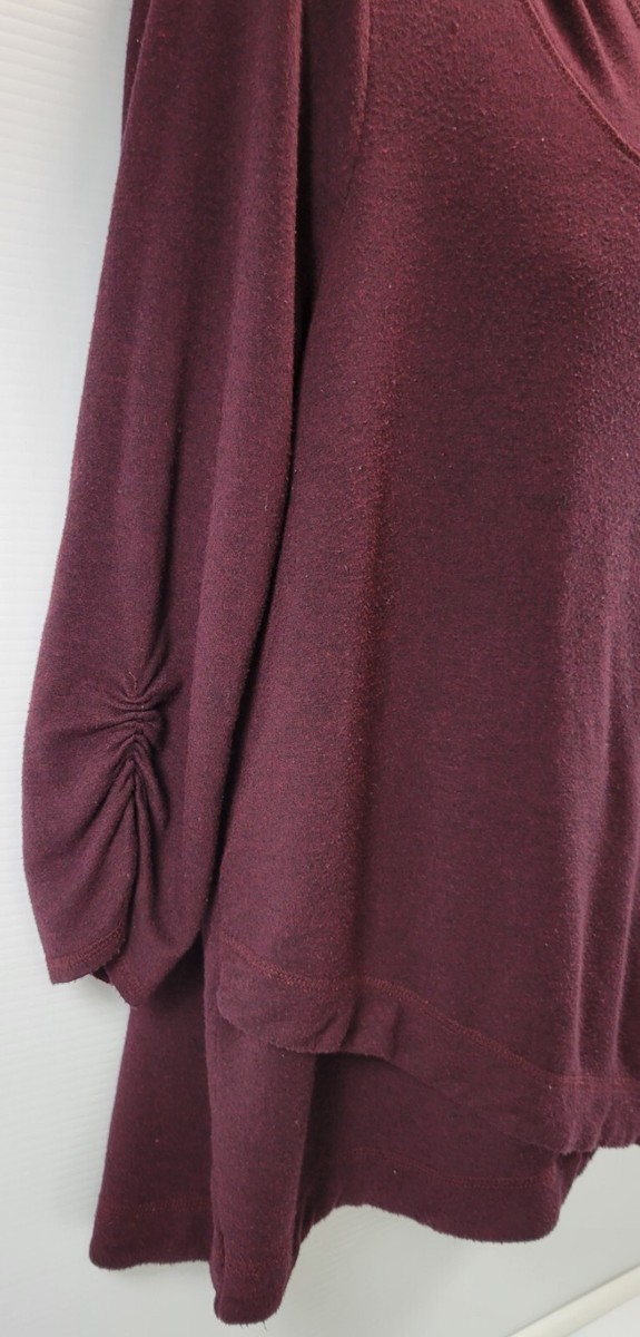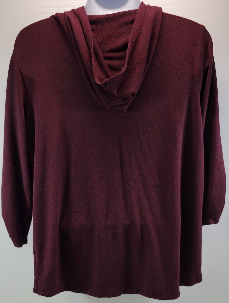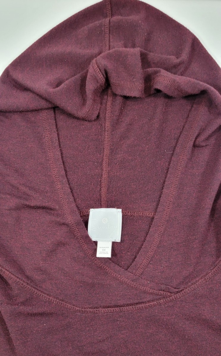 H) Dressbarn Sunday Woman 1X Hooded Pullover Sweatshirt Top Burgundy Purple
