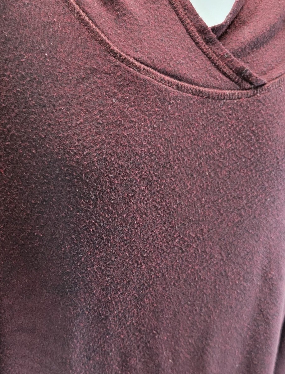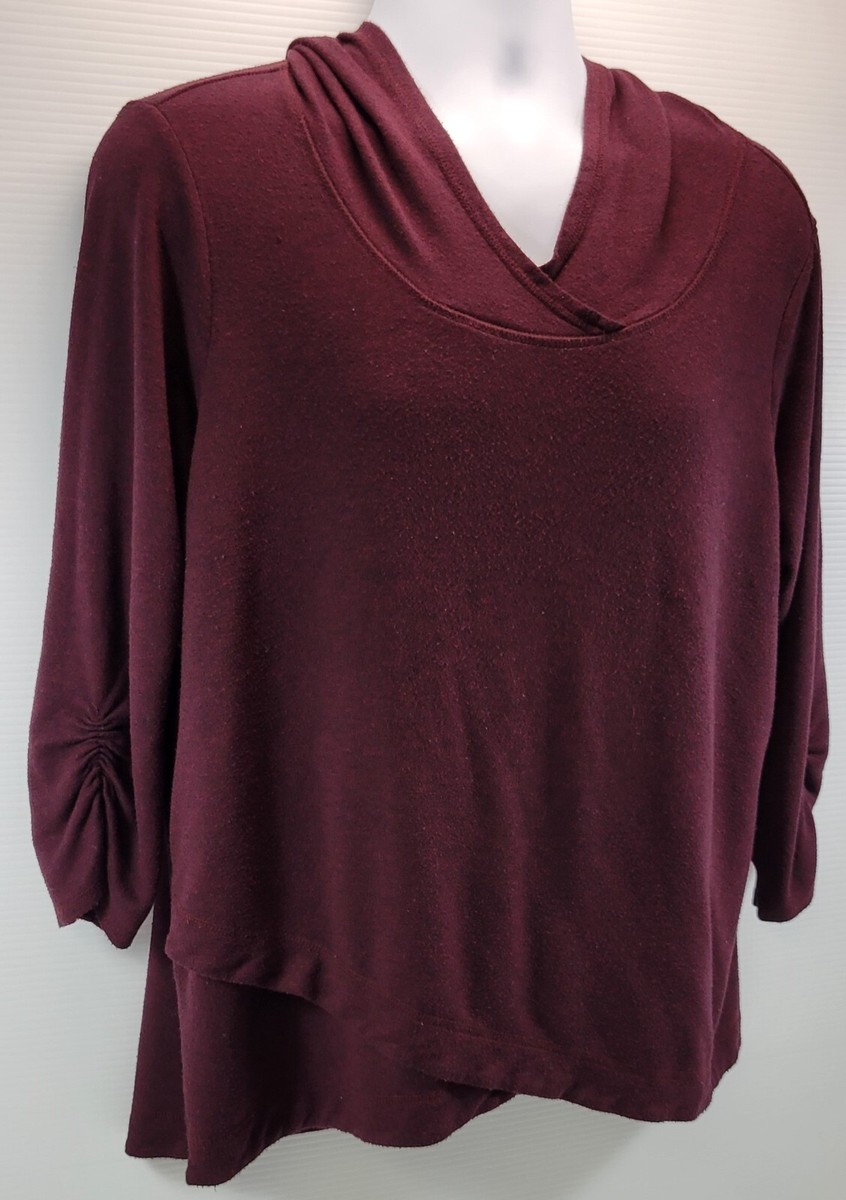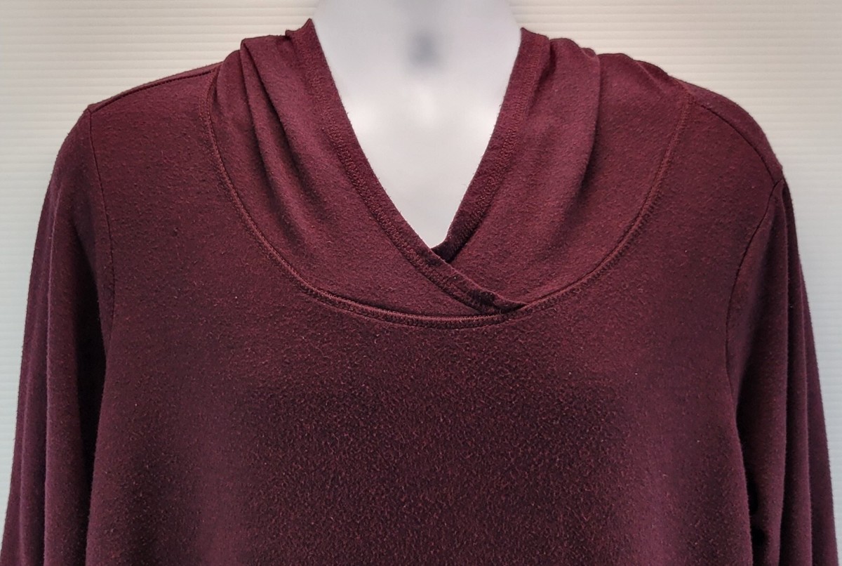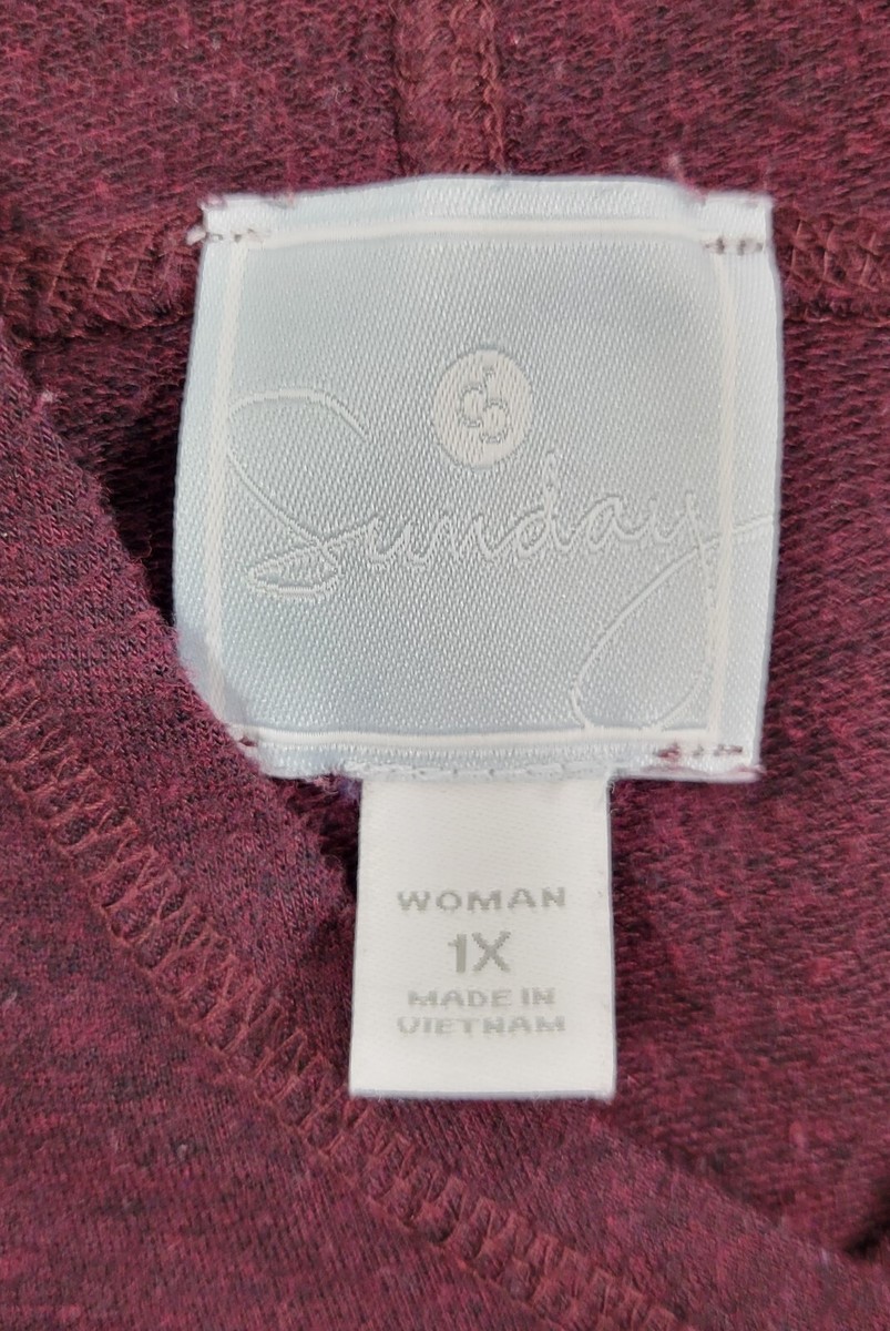 H) Dressbarn Sunday Woman 1X Hooded Pullover Sweatshirt Top Burgundy Purple