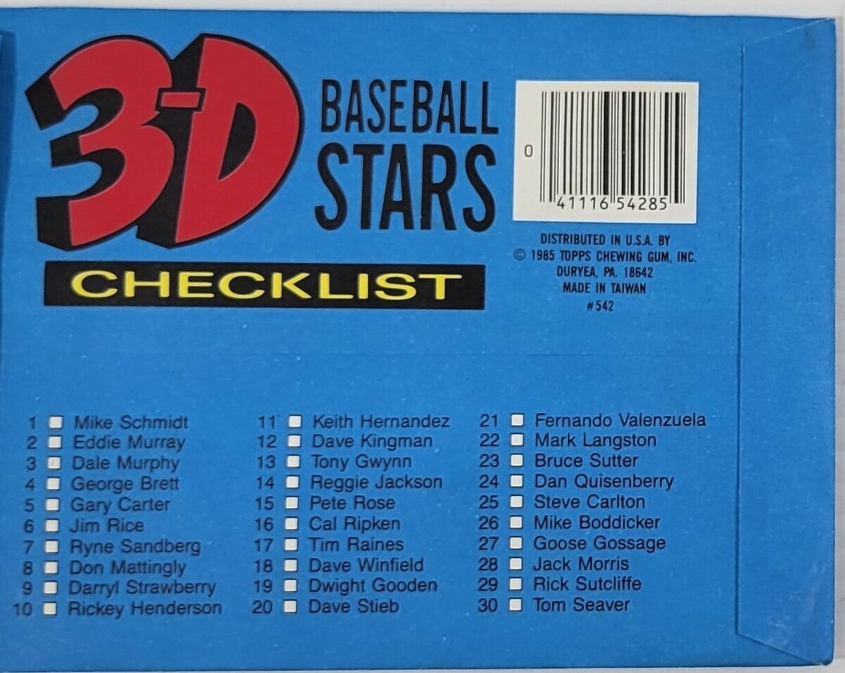 Unopened 1985 Topps 3-D Oversized Baseball Stars Photo Card