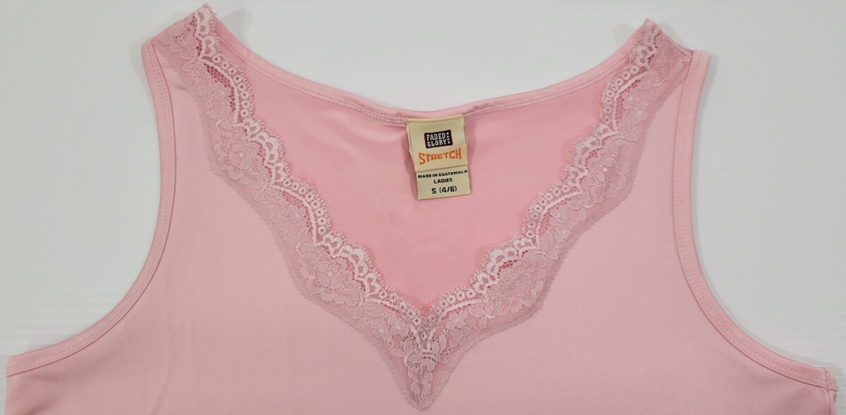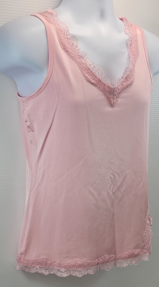 L) Vintage Faded Glory Stretch Lace Trim Pink Tank Top Small (4/6)