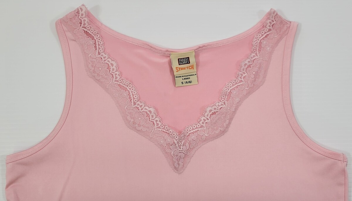 Vintage Faded Glory Stretch Lace Trim Pink Tank Top